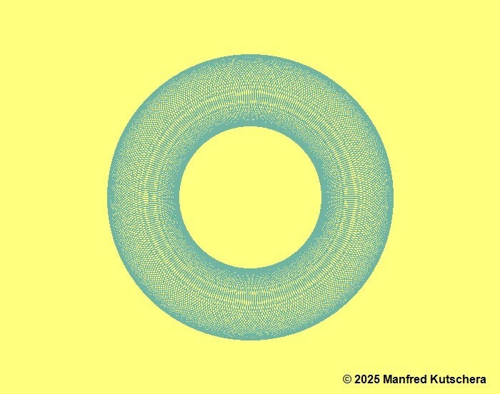 Dieses Kunstwerk wurde mit einer von mir entwickelten Software entwickelt. Es stellt ineinander verlaufende Kreise in verschiedenen Farben und verschiedene Hintergründe dar.