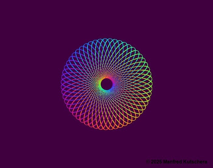 Dieses Kunstwerk wurde mit einer von mir entwickelten Softwareentwickelt. Es stellt ineinander verlaufende Kreise in verschiedenen Farben und verschiedene Hintergründe dar.
