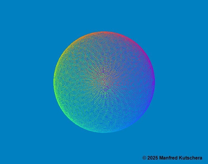 Dieses Kunstwerk wurde mit einer von mir entwickelten Software entwickelten Software entwickelt. Es stellt ineinander verlaufende Kreise in verschiedenen Farben und verschiedene Hintergründe dar.