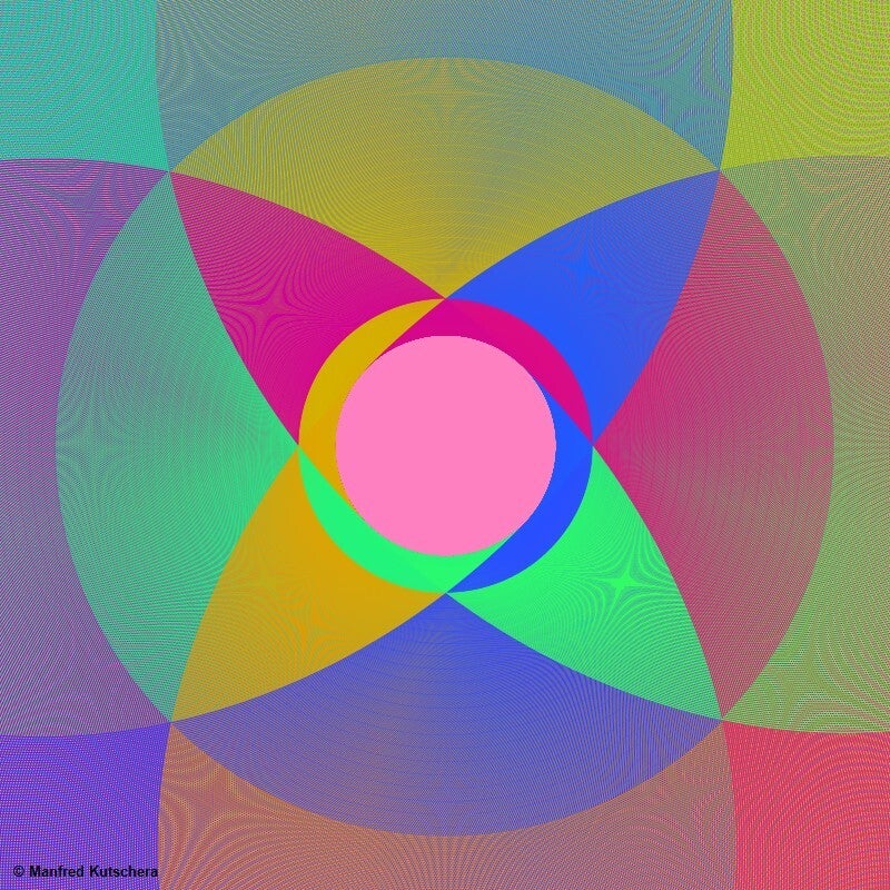 Dieses Kunstwerk wurde mit einer von mir entwickelt. Es stellt ineinander verlaufende Kreise in verschiedenen Farben und verschiedene Hintergründe dar.
