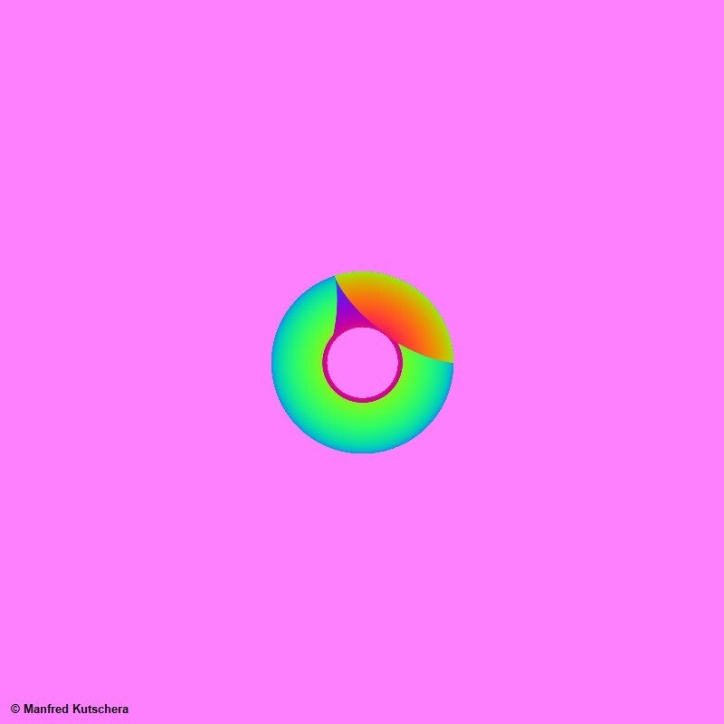 Dieses Kunstwerk wurde mit einer von mir entwickelten Software entwickelt. Es stellt ineinander verlaufende Kreise in verschiedenen Farben und verschiedene Hintergründe dar.