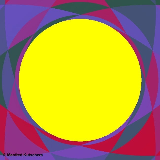 Dieses Kunstwerk wurde mit einer von mir entwickelten Software entwickelt. Es stellt ineinander Kreise in verschiedenen Farben und verschiedene Hintergründe dar.