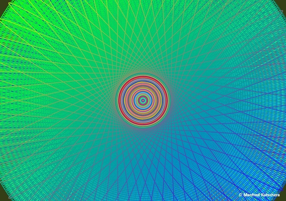 Dieses Kunstwerk wurde mit einer von mir entwickelten Software entwickelt. Es stellt ineinander Kreise in verschiedenen Farben und verschiedene Hintergründe dar.