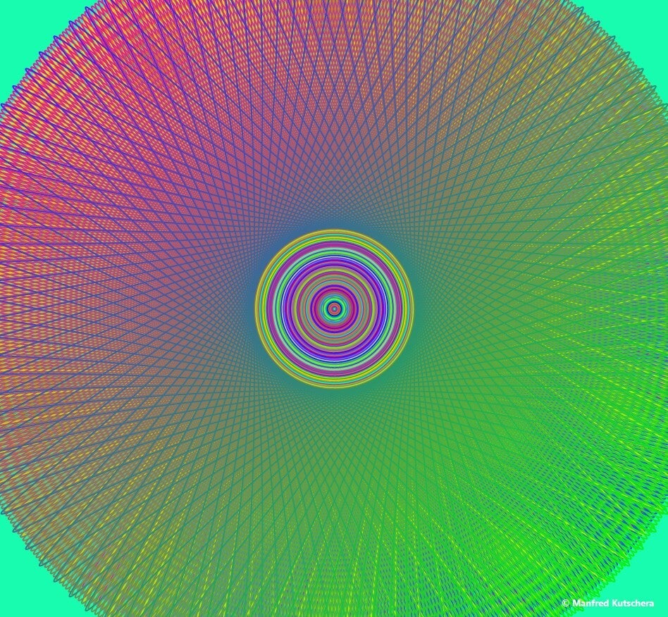 Dieses Kunstwerk wurde mit einer von mir entwickelten Software entwickelt. Es stellt ineinander Kreise in verschiedenen Farben und verschiedene Hintergründe dar.